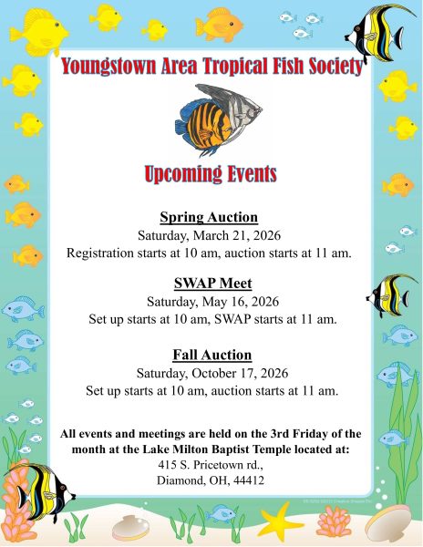 The Youngstown Area Tropical Fish Society is starting an endowment fund. This fund will be referred to as the “Tom DiCola Fund” for all future reference. All proceeds of this fund belong solely to the Youngstown Area Tropical Fish Society and will be used for the education of juniors in the hobby, education for other hobby-related projects, and for conservation projects involving the tropical fish hobby. All proceeds will come from donations specified to the fund expressly and will be kept in the fund’s account. These funds will not be used for anything other than the specified topics and cannot be used as YATFS funds unless the club comes under dire times. None of the proceeds will be used without permission of the YATFS Board of Directors upon voting on the topic for its use.